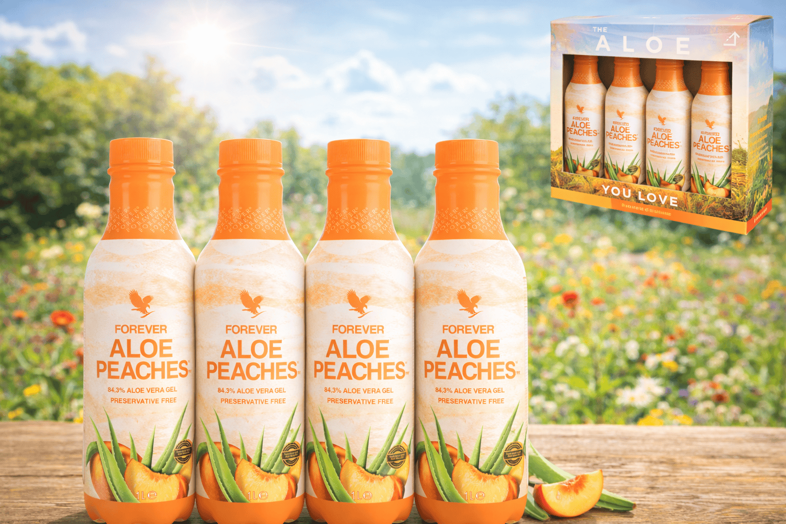 Mit dem Forever Aloe Peaches im praktischen 4er Pack genießt du die wohltuenden Eigenschaften der Aloe Vera kombiniert mit dem angenehm fruchtigen Geschmack sonnengereifter Pfirsiche. Das hochwertige Trinkgel enthält über 84 % reines Aloe-Vera-Gel aus dem Inneren des Blattes und überzeugt durch seine besonders milde und fruchtige Note.